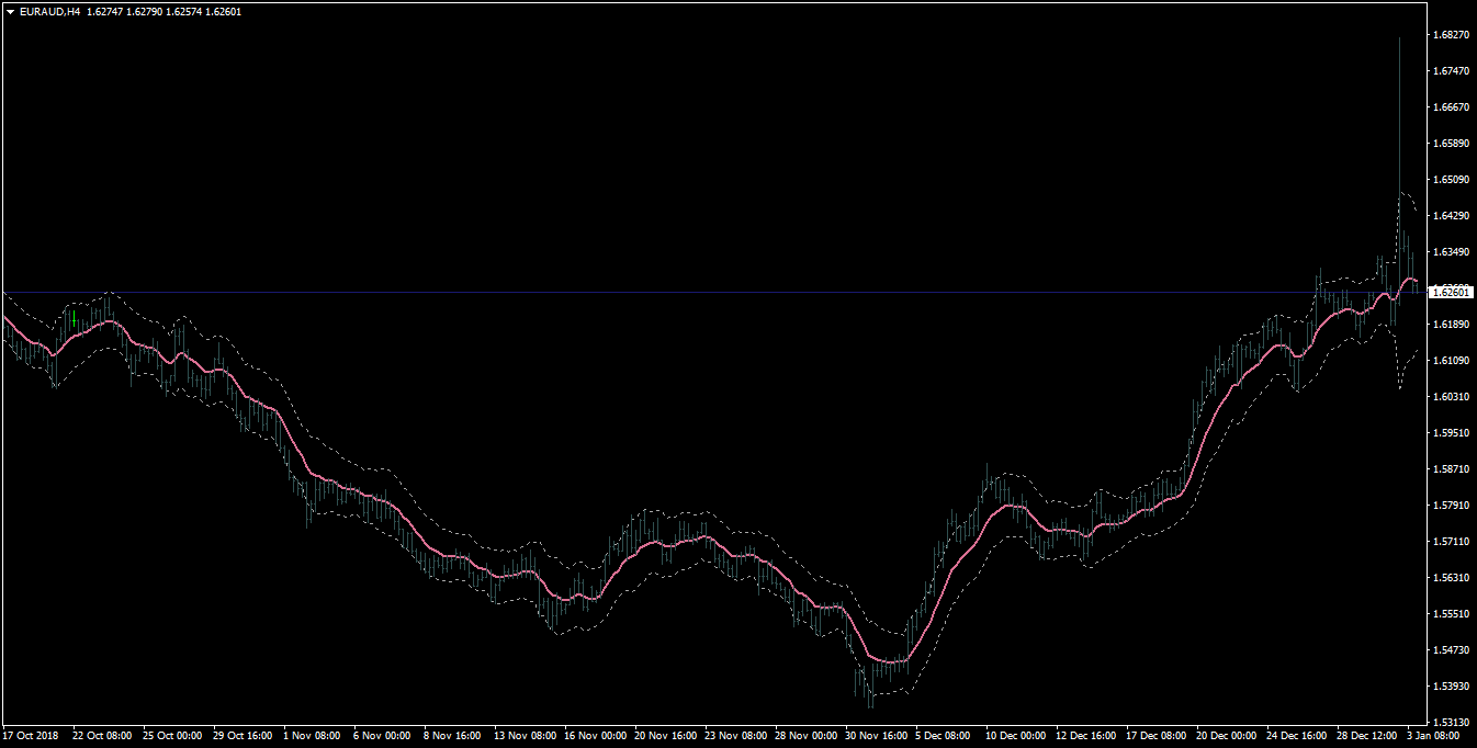 This indicator is showing an example how an adaptive ATR (originally published here : Adaptive ATR) can be used within some other indicator. As an addition, not only the ATR is adaptive in this indicator but the main value is calculated as adaptive EMA using the same Kauffman's efficiency ratio for adapting