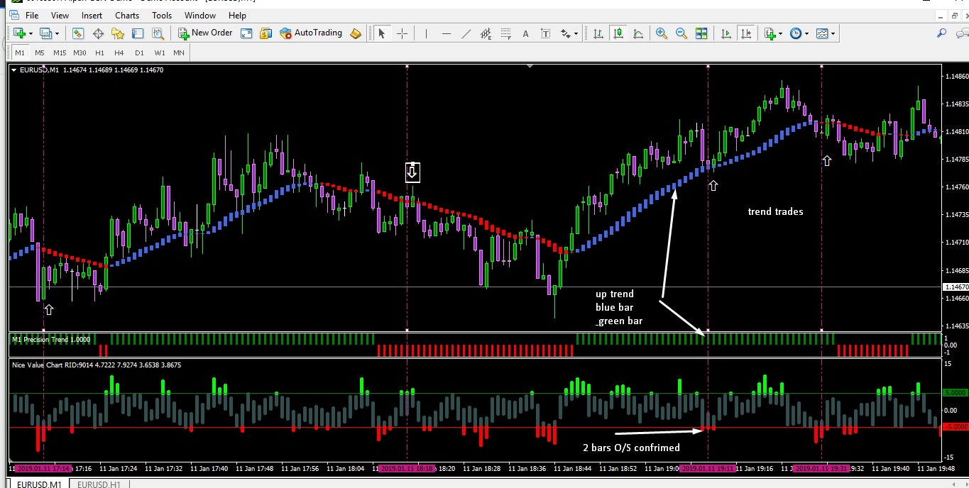 preciesion trend direction trade 3 bars expiry -1min chart