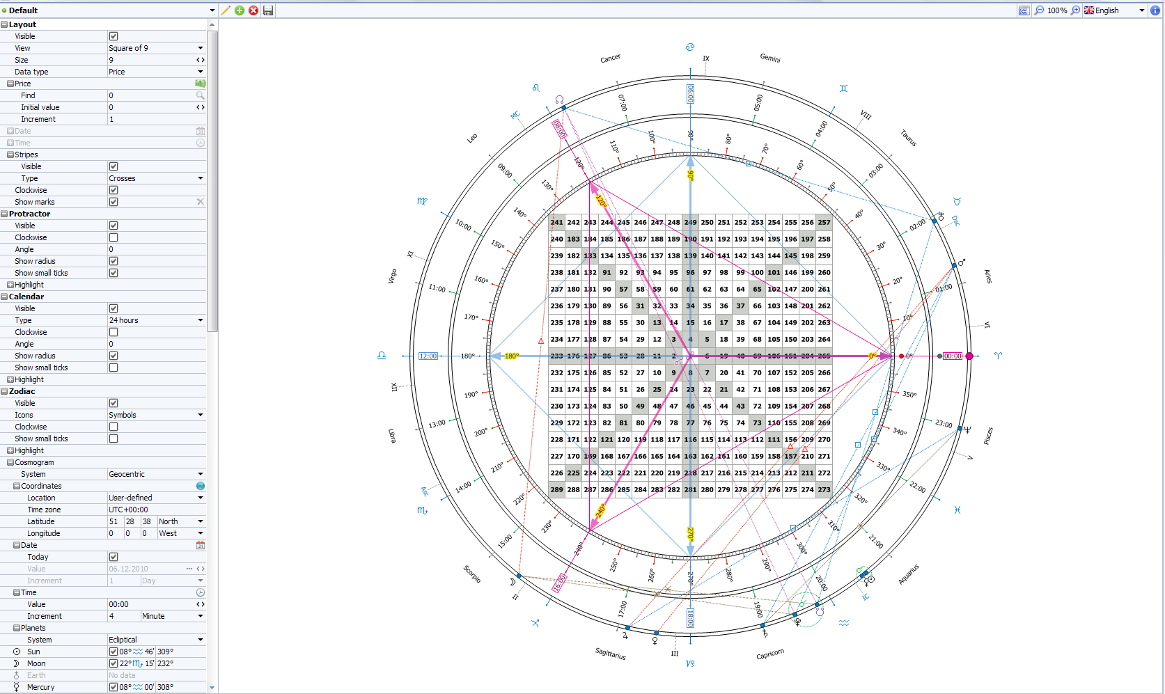 portable program for determining the turn of the market according to the method of Gann, taking into account astrological factors
