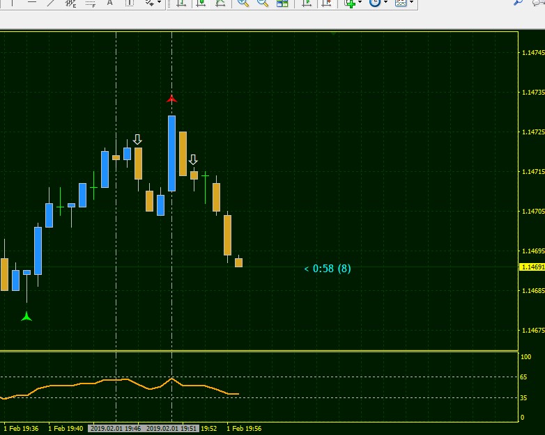 2.) the candle after the arrow is shorter than the alert/arrow candle.
