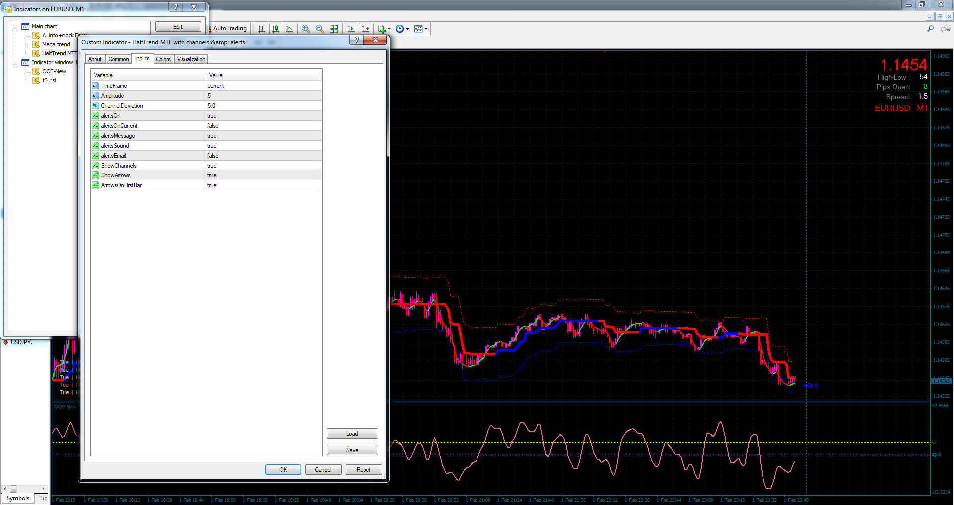 i. For example When we have uptrend (shown in blue on "HalfTrend MTF" indicator), the price has to cross the upper channel and close there.