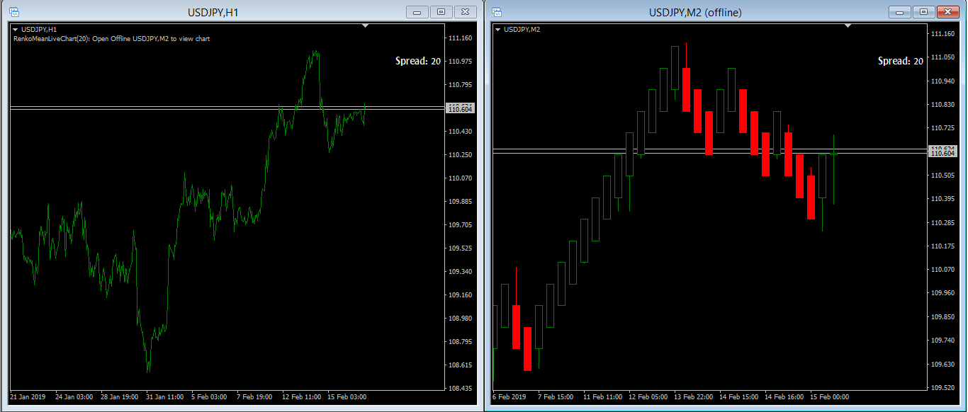 Anyone know what's the reason that M1 & H1 in Median Renko chart will have different kind of bricks? (Box size i used below the pictures are same)