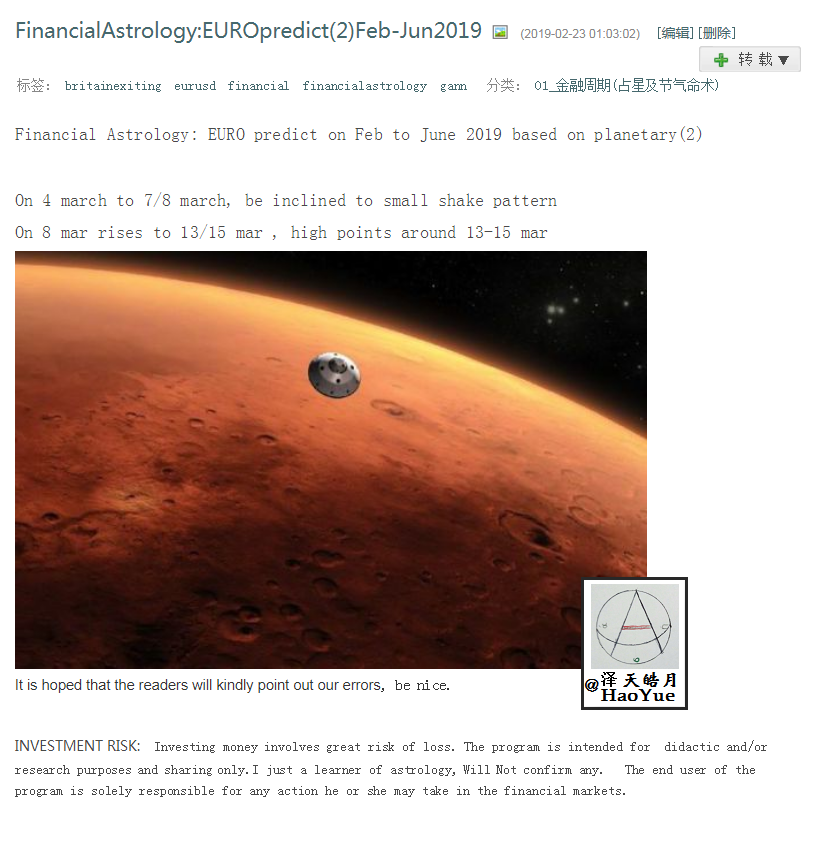 Re: Financial Astorlogy: EURO feb-jun2019 Turning points and period Predict