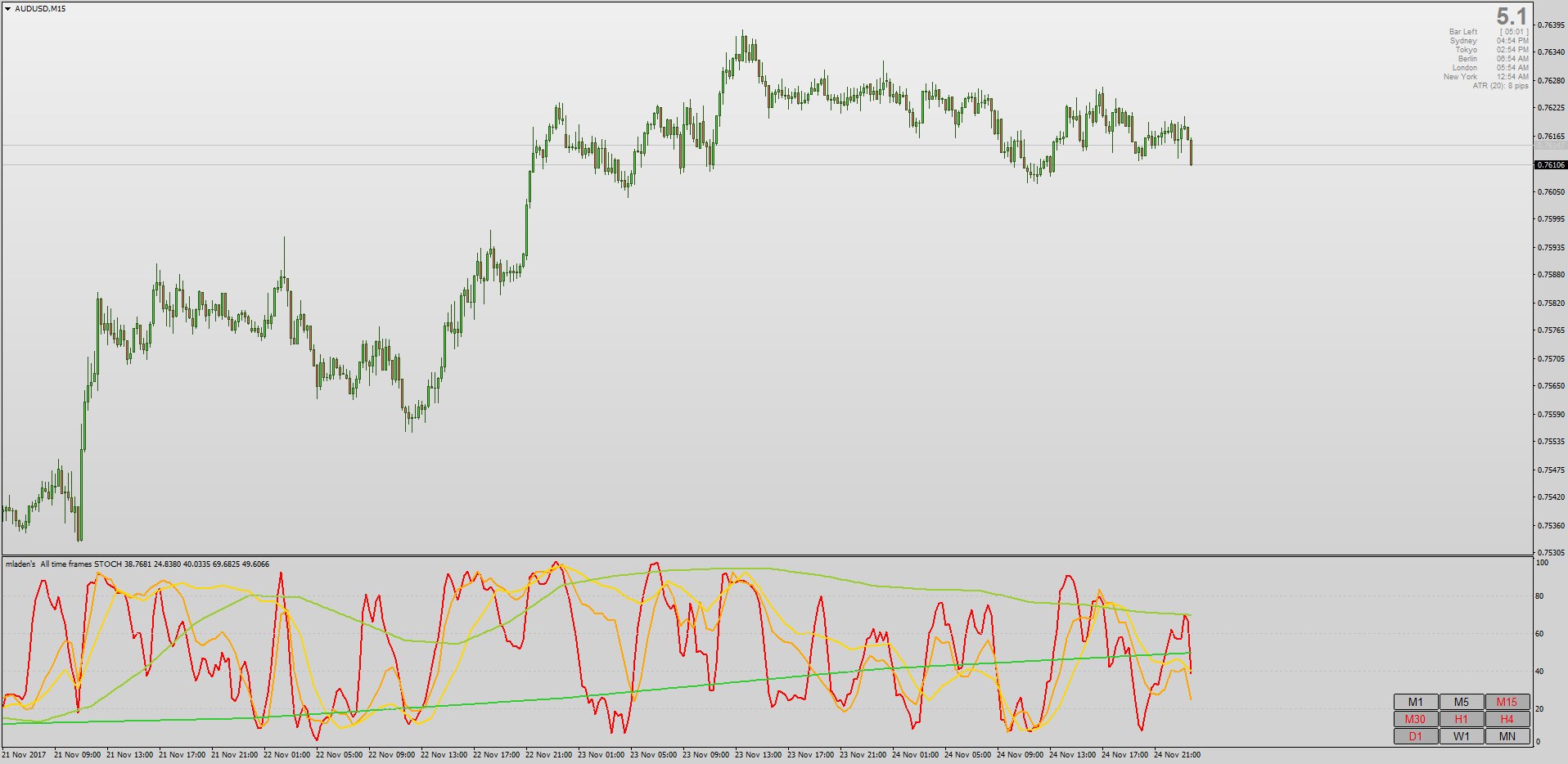 Mladen's all timeframe Stochastic indicator allows you to view exactly what the Stochastic indicator is doing on all timeframes within your indicator sub window at the press of a button. Download here: viewtopic.php?p=1294995381#p1294995381