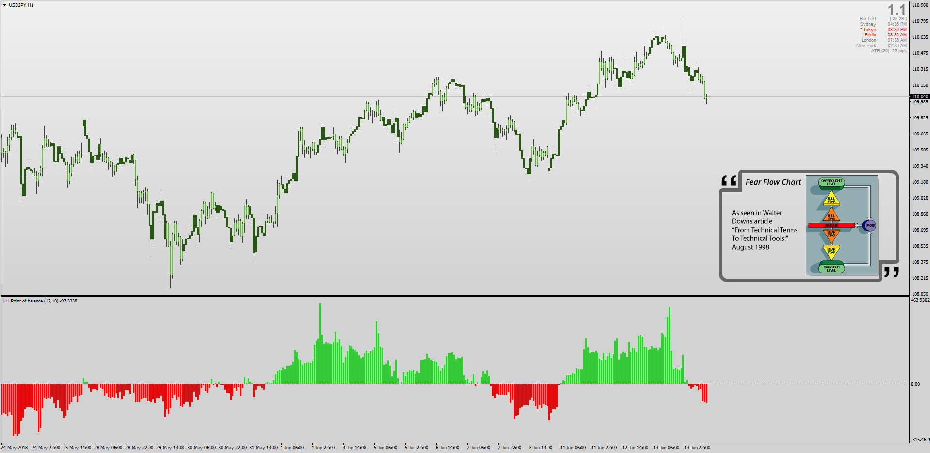 The Point Of Balance was first delineated in 1998 by Walter Downs who famously noted that "Fear can be logically defined as psychological fluctuations of emotion around an average price". Coded by Mladen & Alerts added by Mrtools, download POB here: viewtopic.php?p=1295375518#p1295375518