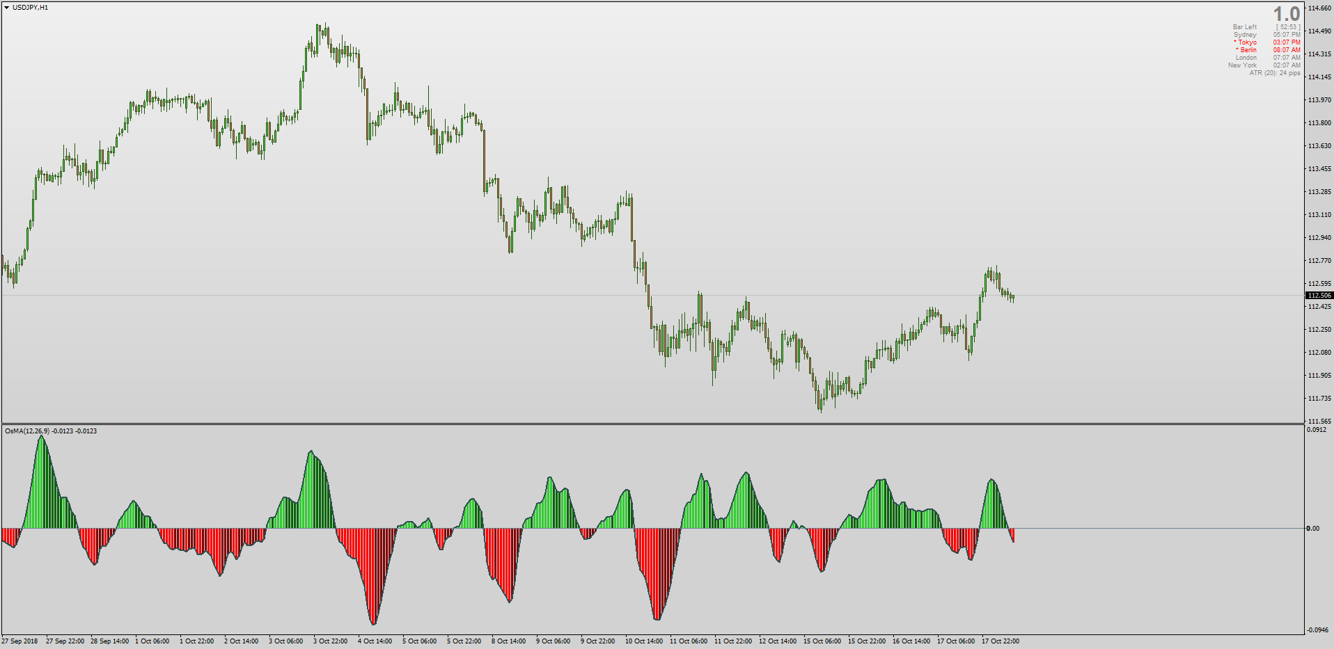 The Oscillator of Moving Average (OsMA) is used to determine buying & selling pressure by displaying the calculated difference between the MACD & the signal line. Ideal for trend trading, the non-repainting version by Mrtools can be downloaded here: viewtopic.php?p=1295380400#p1295380400