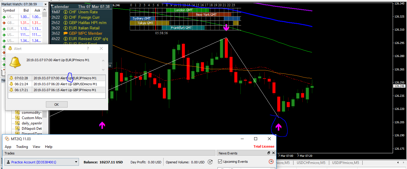 When this indicator gives a signal for call/up, then MT2IQ takes it as put/down.