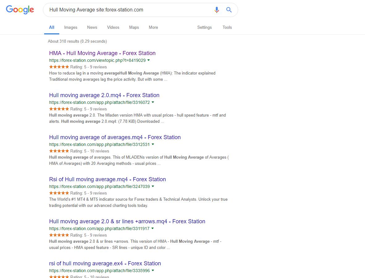 So for example, if you were looking for the Hull Moving Average and you wanted to drill deep into our site you'd type in: