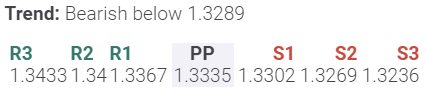 As of writing, the spot is trading at 1.330 with diamond resistance and support, currently at 1.3363 and 1.3313, respectively.
