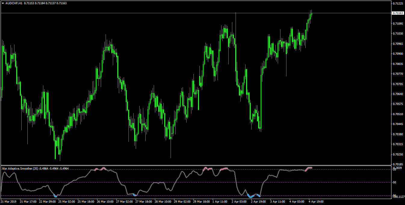 Not sure if I posted this but just in case ,this is a smoothed wpr using a deviation to adapt the smoothing length of the jurik. Lines are colored on entering user defined overbought and oversold zones.