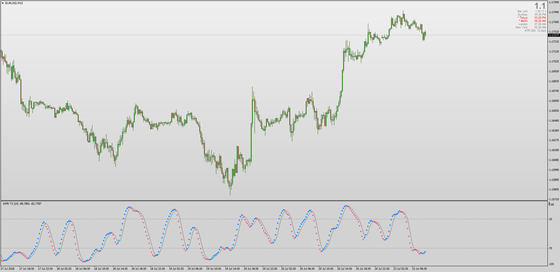 The non-repainting T3 Williams %R (WPR) by Mrtools is a novice-friendly indicator which clearly shows momentum, trend and exhaustion. As the dots separate, this tells us momentum is strong & encourages us to stay in the trade. Download: viewtopic.php?p=1295475370#p1295475370