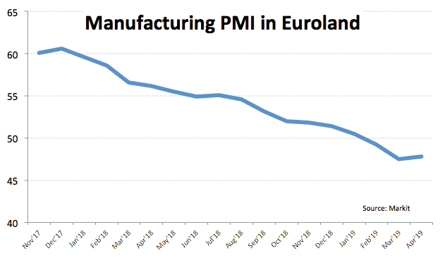 In fact, April’s advanced manufacturing PMIs in Euroland published last Thursday have once again disappointed investors and poured cold water over any hope of a pick up in the region.