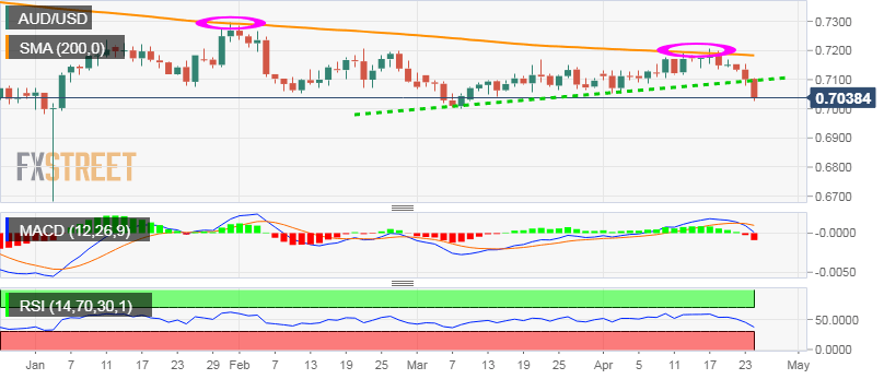 - The pair lost ground for the fifth consecutive session and a sustained break through a short-term ascending trend-line, near the 0.7100 mark, was seen as a key trigger for bearish traders.