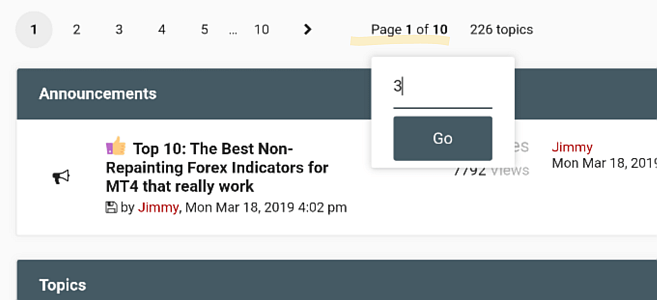 - Fixed error with hidden "Jump to page number" box. Visitors can now select a specific page number on any forum, thread or attachments page by clicking on Page number area (highlighted in yellow)