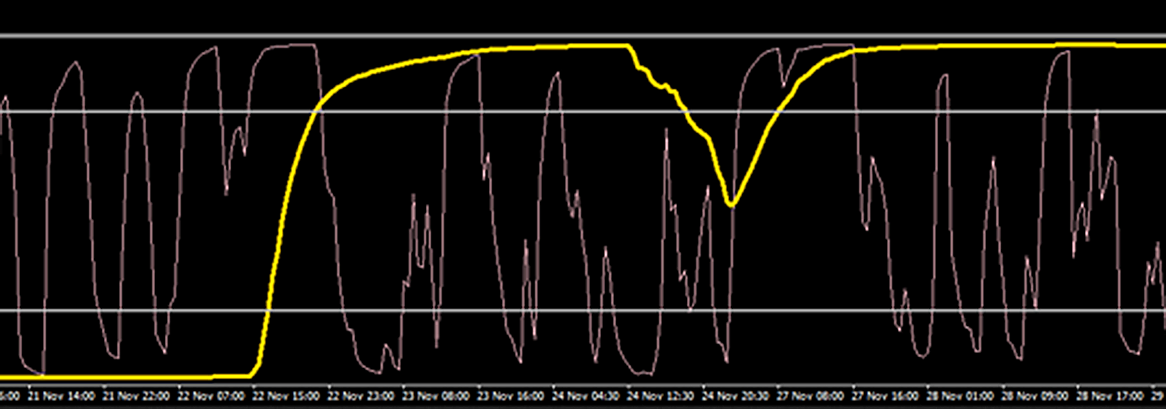 I would ask for help in finding these two indicators. The yellow line is probably some smoothed EMA or SVR or something like that... and the second i suppose its RSI but I'm not sure ... I've seen it somewhere but i dunno....