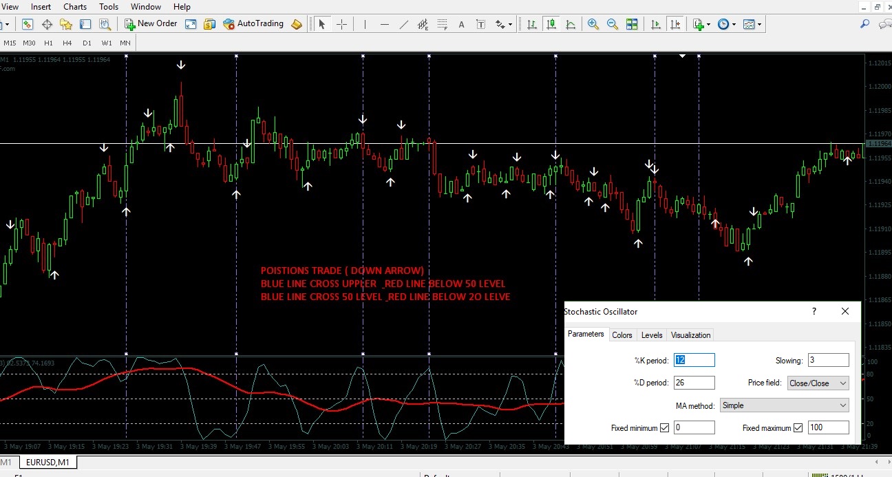 This post mainly those who trades with or likes stochastic indicator or those who test expirement in TREND FLOW strategy. Snap attached and would like to corders help to upate the arrow as per signal .: )