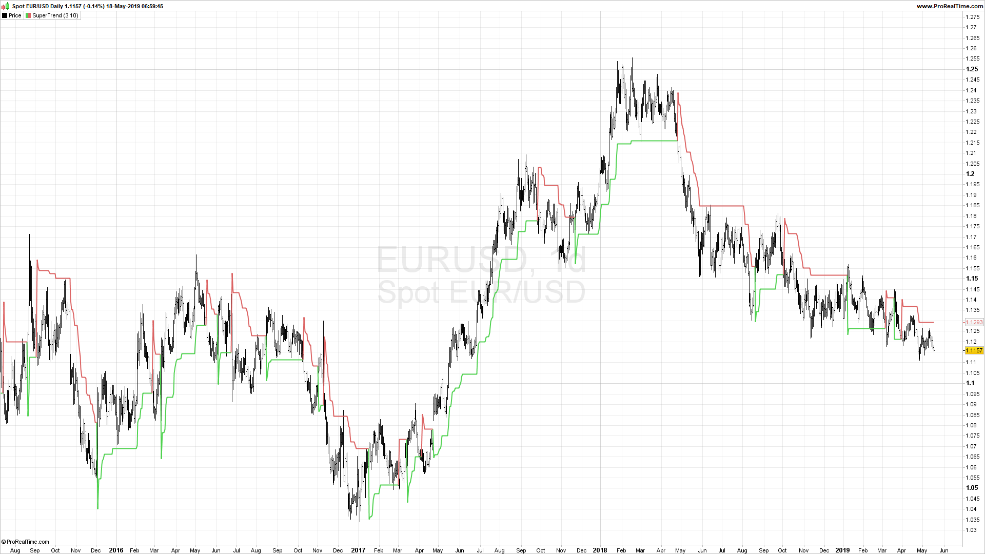 Example: Supertrend shown on a ProRealTime Chart