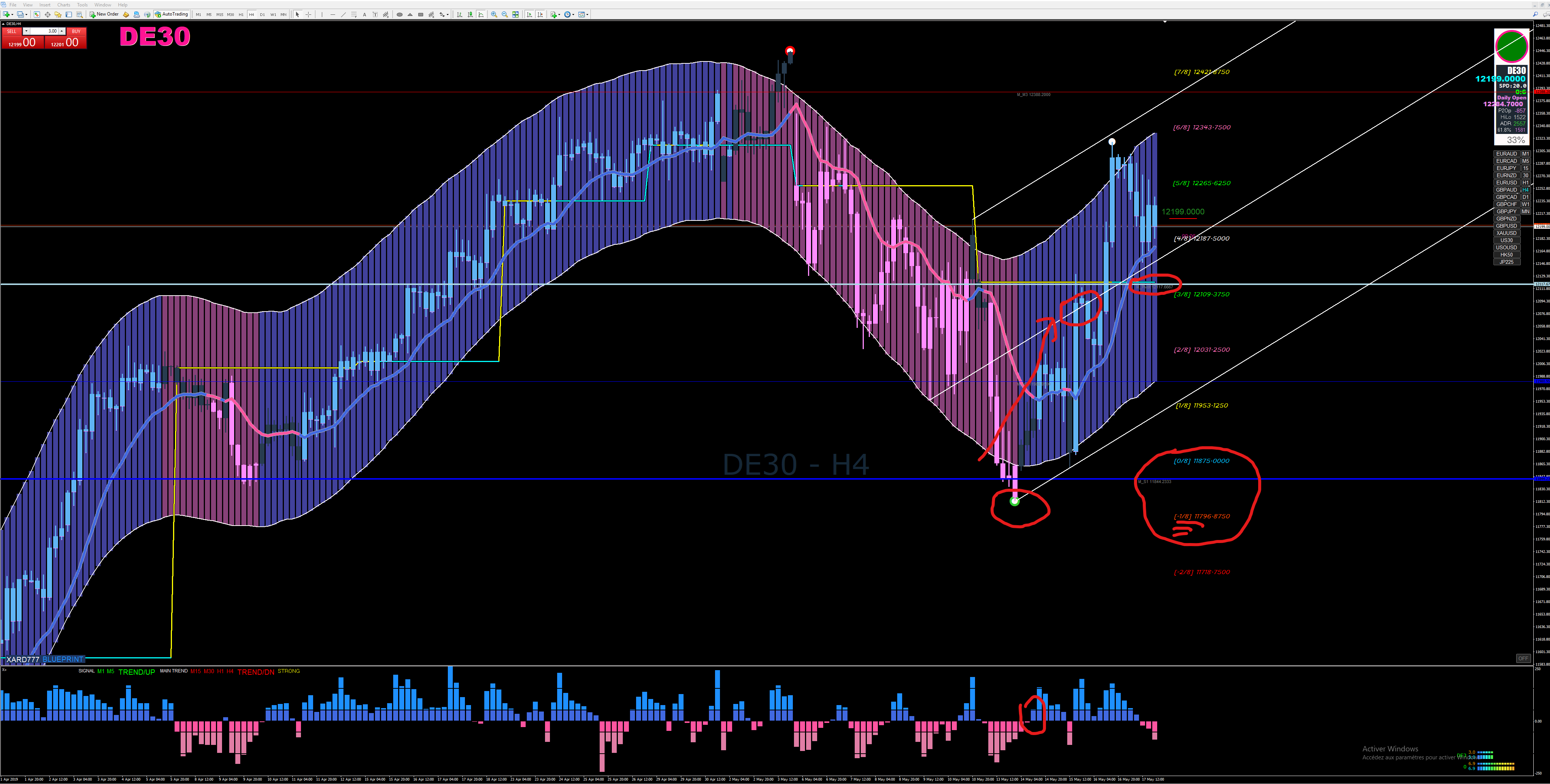 recent exemple of trade DAX30 H4 (180-400 pts)with rules of murray ; pitchfork and xard system . good pleasure
