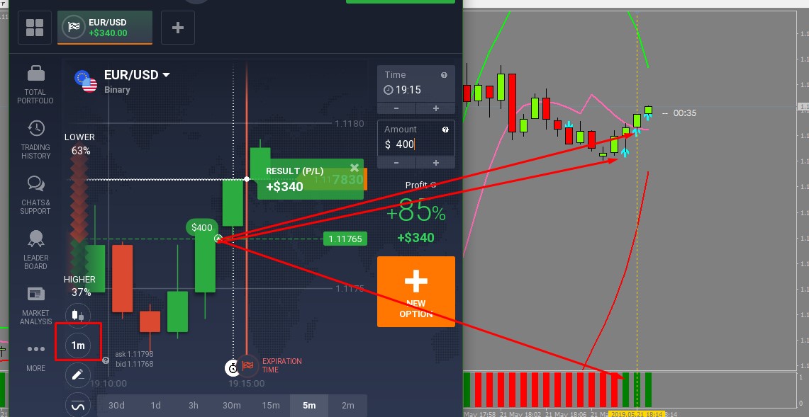 trend direction trade for 1min expiry on current bar arrow
