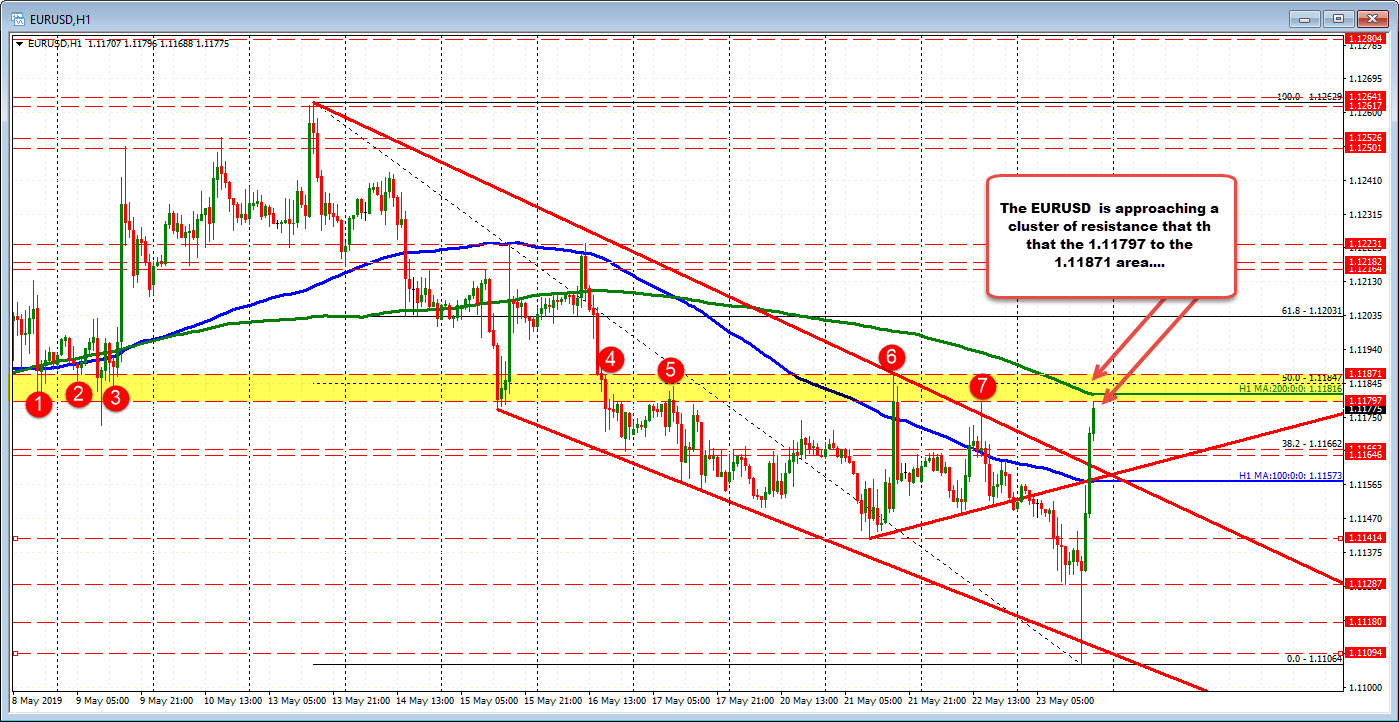 EURUSD moves toward the 200 hour MA and other resistance targets