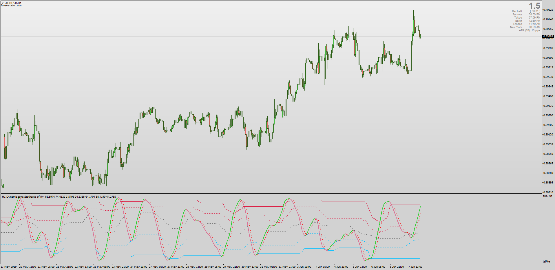 This is Mrtools's Dynamic Double Zone Stochastic of RVI for MT4. It comes with Multi-timeframe + Interpolation, Alerts, Arrows, Color Options for Slope & much more.