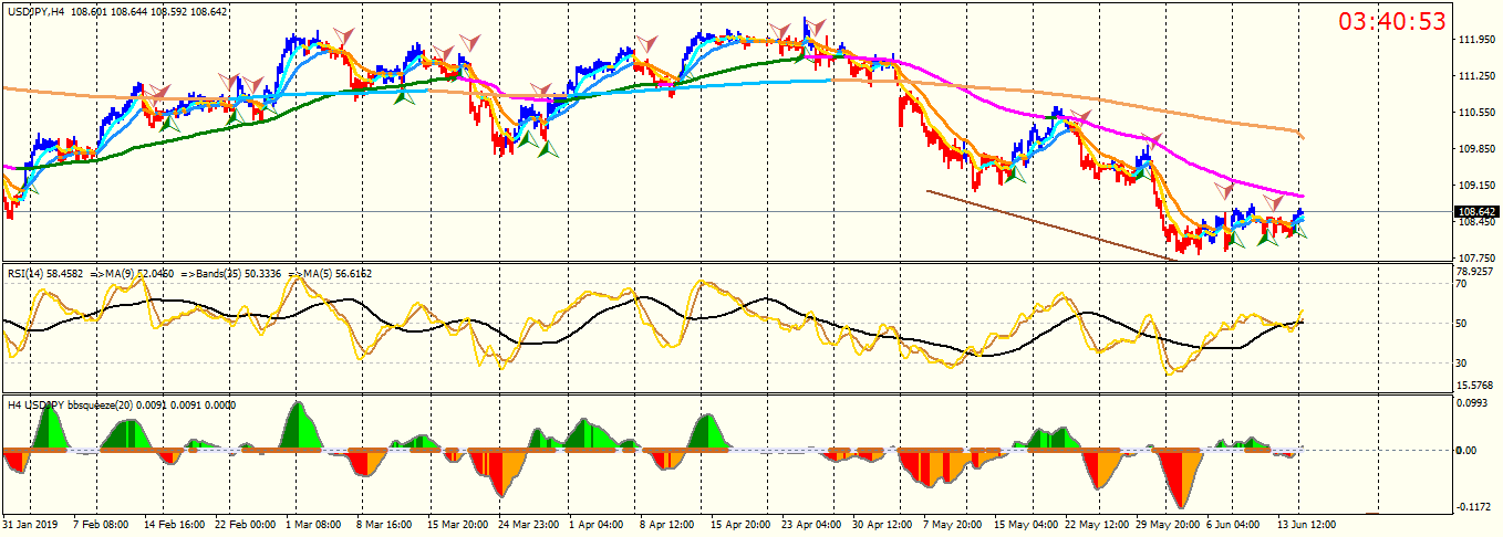 H4 T.F : RSI is above bollinger band , engine of bbsqueeze does not turn on , but movings cross up .