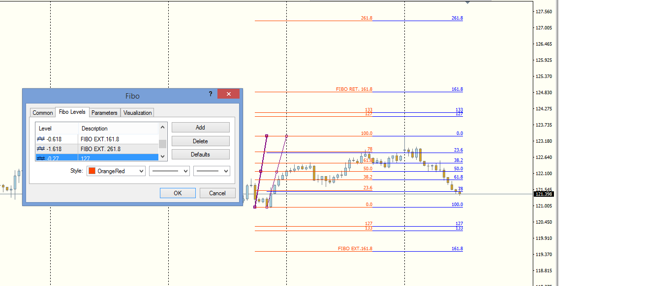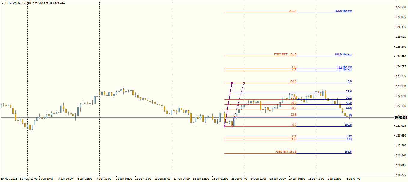 as you see on chart ,, if we draw it normally , the numbers below 100fibo is FIBO RET. and above 0 is FIBO EXT.