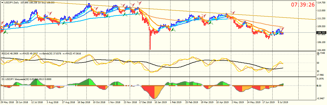 Daily T.F. RSI is above 50C.L . 21 & 8 EMA are flat , and shows a positive cross ,,bbsqueeze is green .
