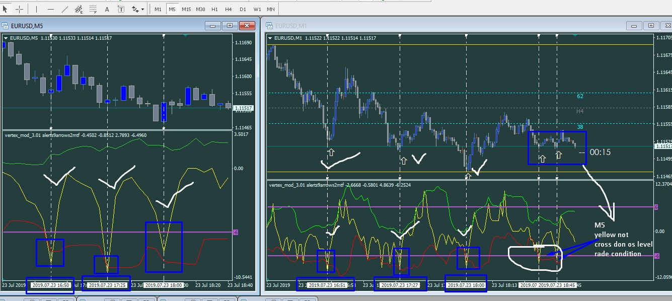 vertex M5 signal position confrimation time and in M1 chart at same time to open trade or next max 2 bars