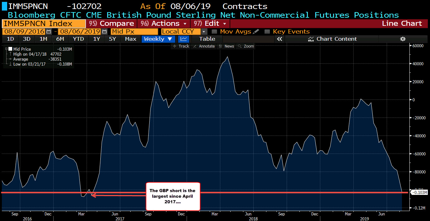 AUD shorts remains the 2nd largest position (short). The AUDUSD bottomed on Wednesday, helped by continued trade tensions with the US and China, and a surprised 50 basis point cut by its neighbors in New Zealand.