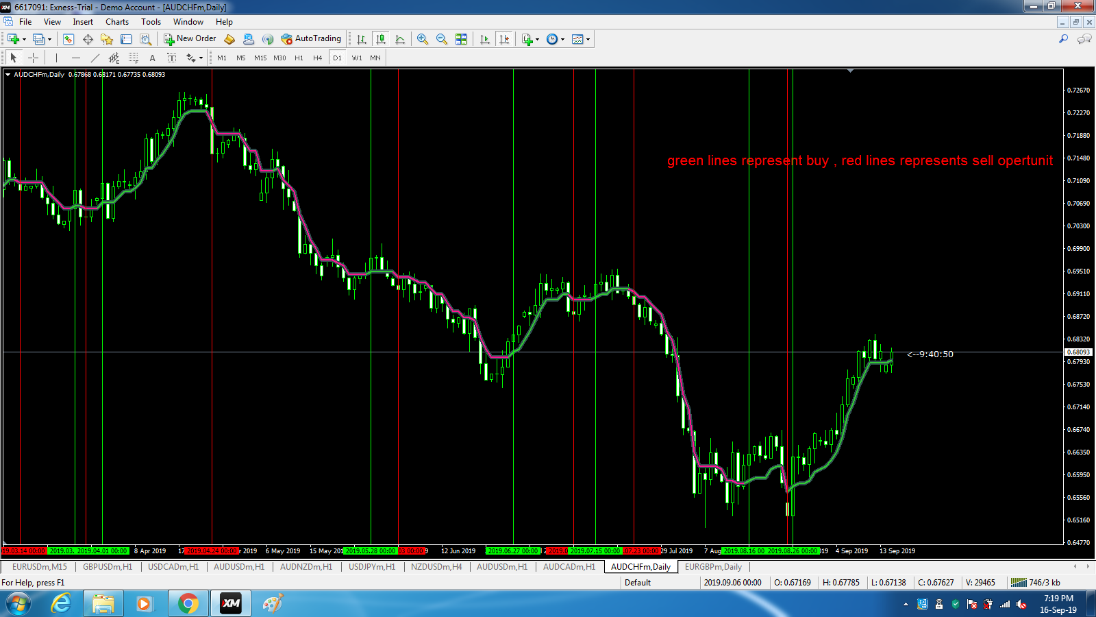 green lines represents buy opportunities
