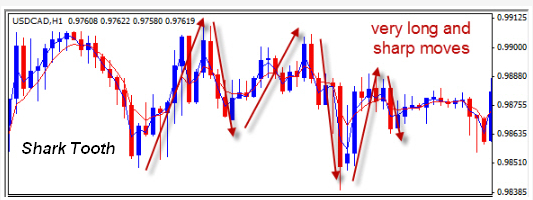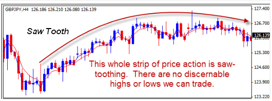 The saw tooth is a market condition where price is moving in a very tight range, not forming clear highs or lows, but is definitely moving.