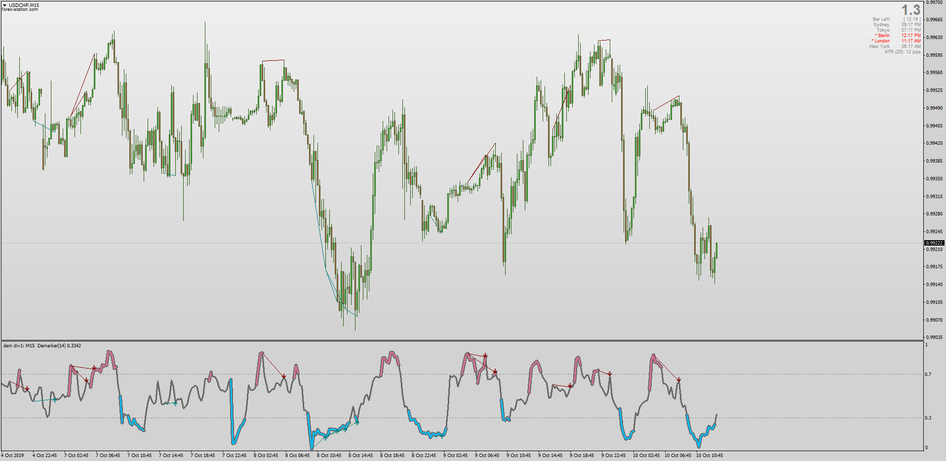 The DeMarker indicator's calculation is similar to the RSI's but instead, it focuses on intra-period highs & lows rather than closing levels. Naturally, the DeMarker is a strong indicator for trading divergences & Mrtools has now made one for MT4 here: viewtopic.php?p=1295396528#p1295396528