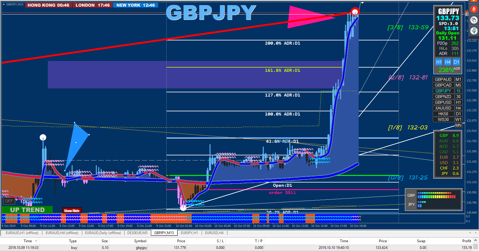 I don't want to sound boring, but I took the same instrument (GBPJPY) based on earlier action - went against me for a while, but it didn't come close to my SL, so next day my patience got rewarded, and at well above 200+% ADR I decided to jump off the train (entry and exit are marked with triangles)DRAXILL wrote: Fri Oct 11, 2019 5:02 pm I had to take the training gloves off for a bit and stretch the old trading muscles.