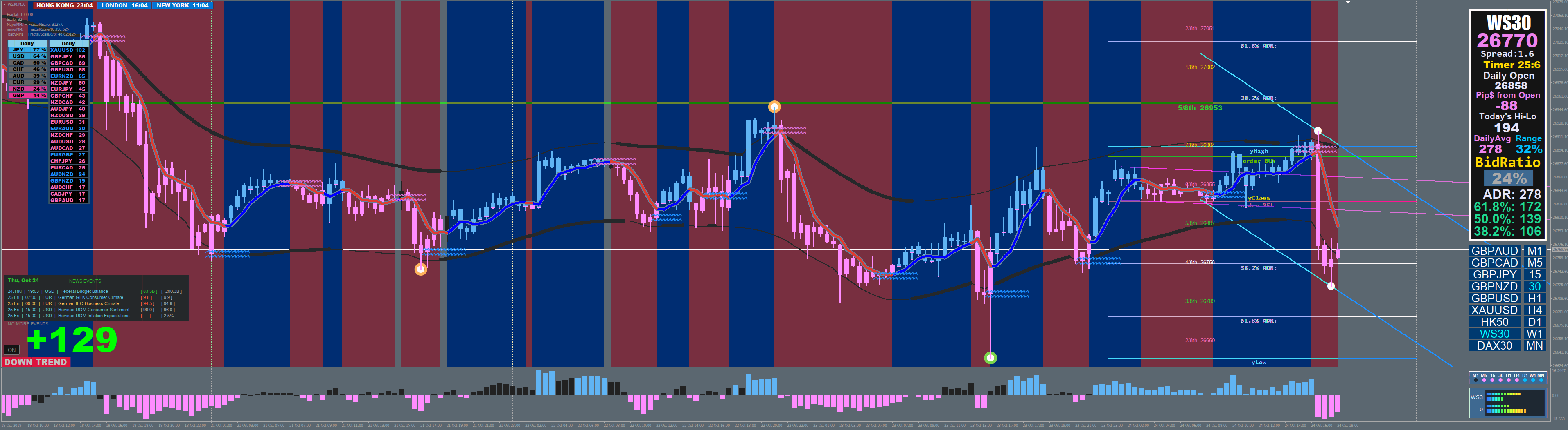 WS30 bounces off the 7/8th BML as the Gold Semafor top holds. This is approx a BML 4/8th move.