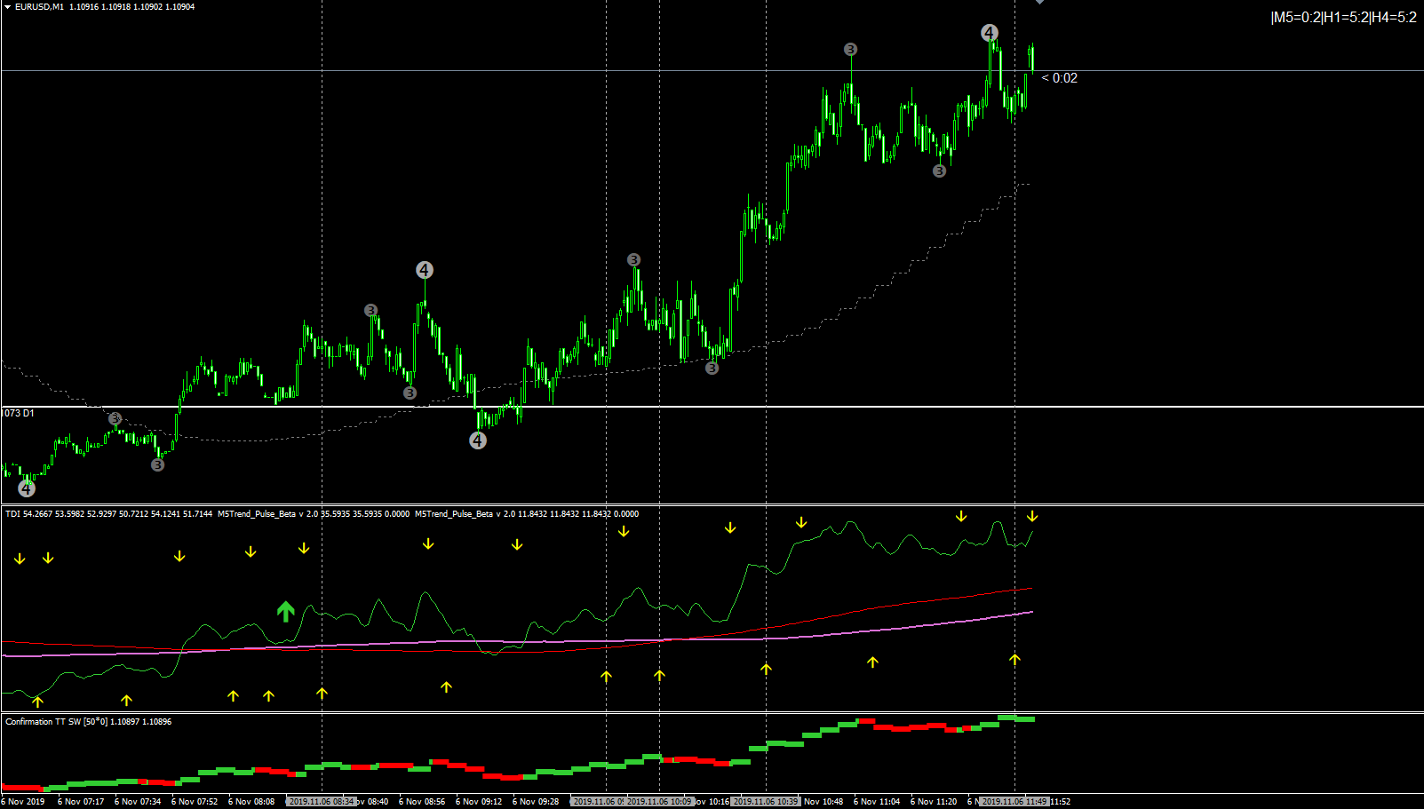 4 hours - no martingale needed so far