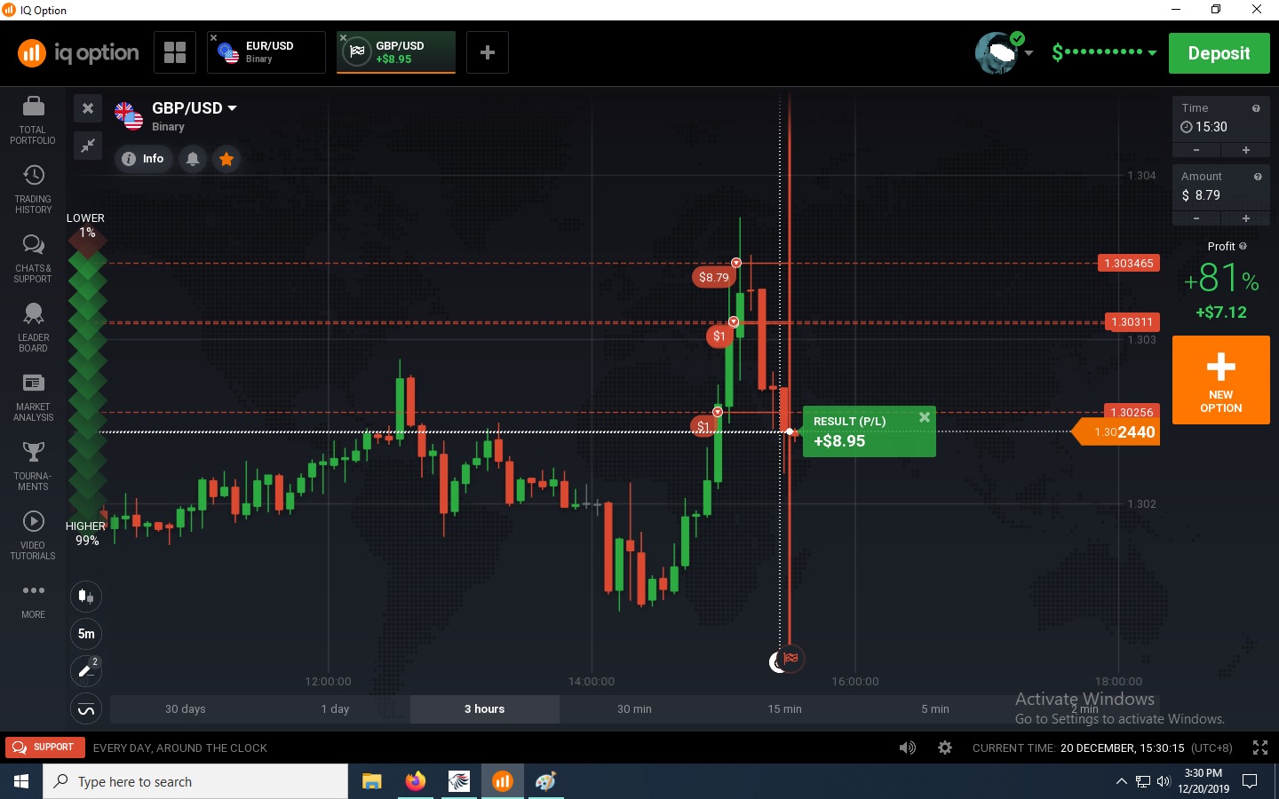 - can do a 15min expiry going towards the trend. never go against it.