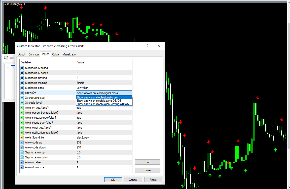 i am looking to get arrows when %K cross %D of stochastic.