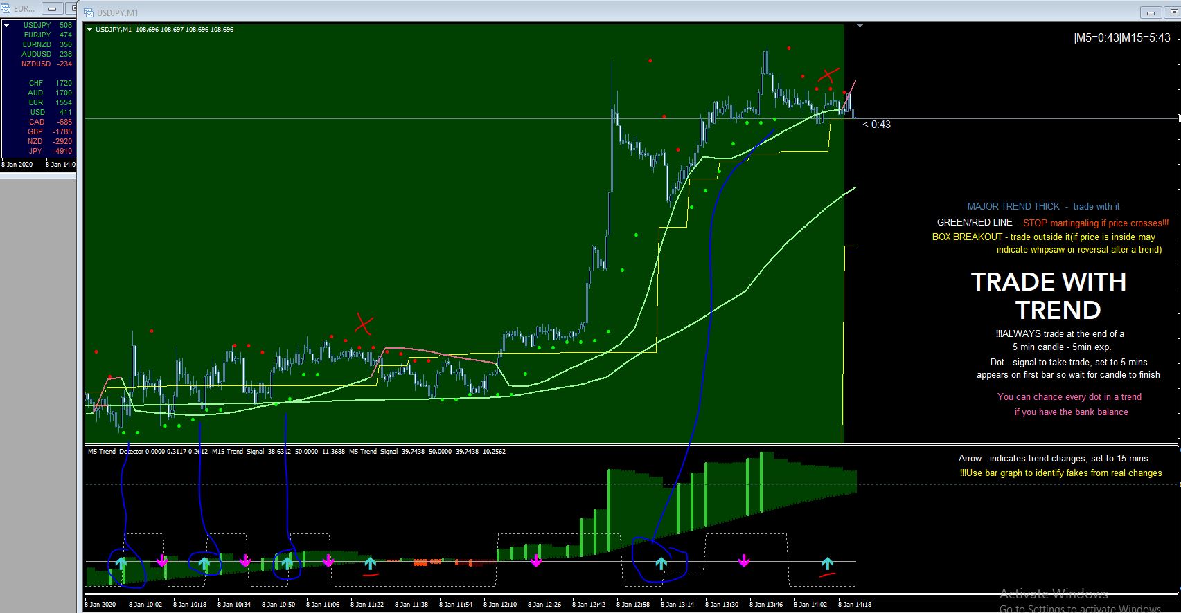 I inverted my arrows(buys for sells/sells for buys) and then filtering those signals against 3 timeframes..cracker time with USDJPY this afternoon