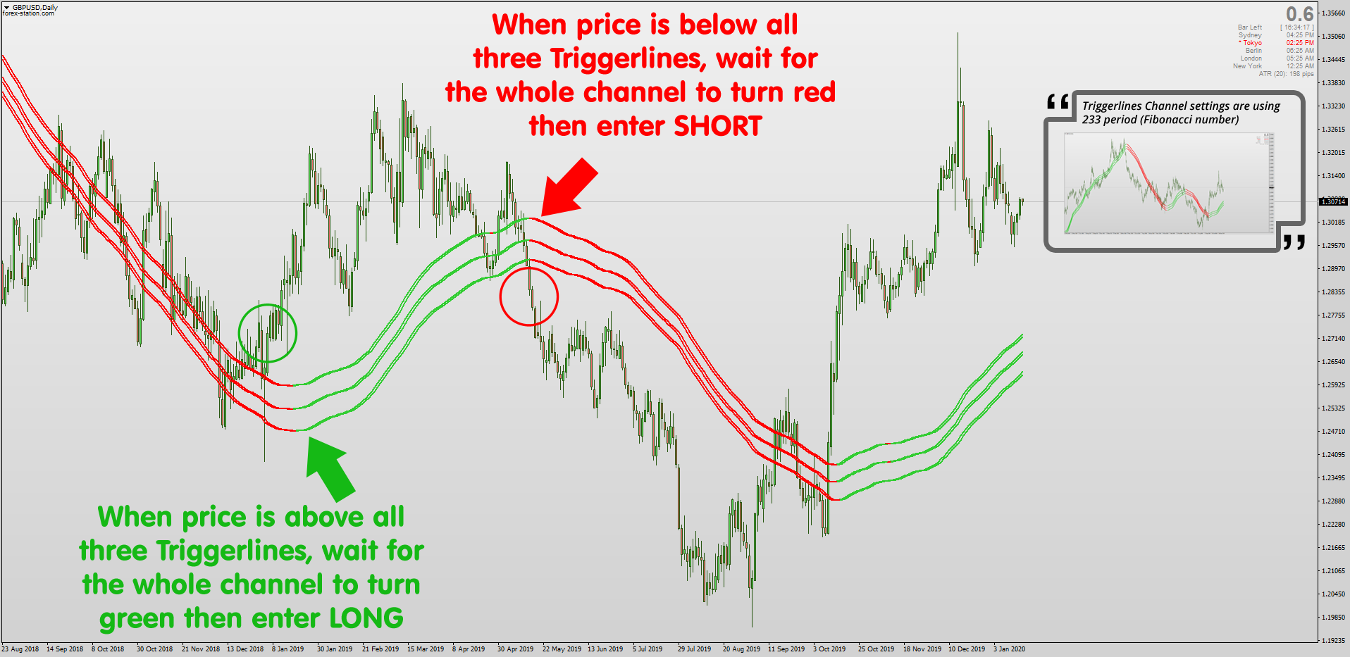Mrtools' recent share of the non-repainting Triggerlines for MT4 can be used as a trend filter & can also be "stacked" to form channels, like the one shown below. Using a 233 period on High, Low & Close the channel can be used for catching large trends: viewtopic.php?p=1295401233#p1295401233