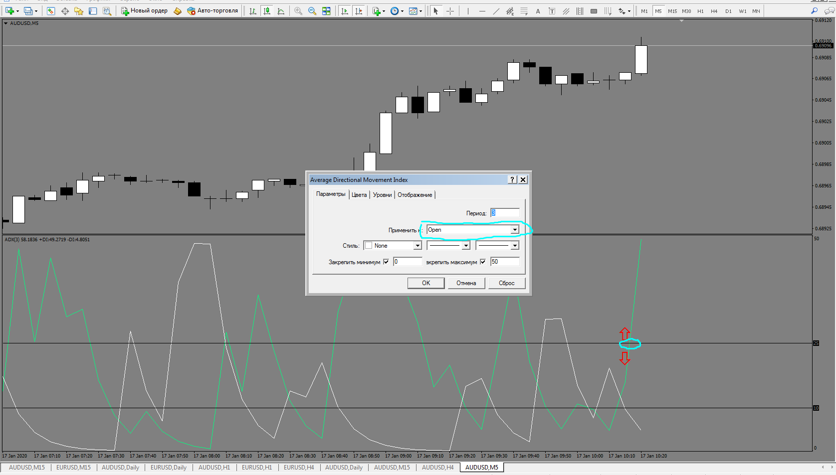 ADX with the open price type gives signals not at the opening of the bar. can I fix it somehow?