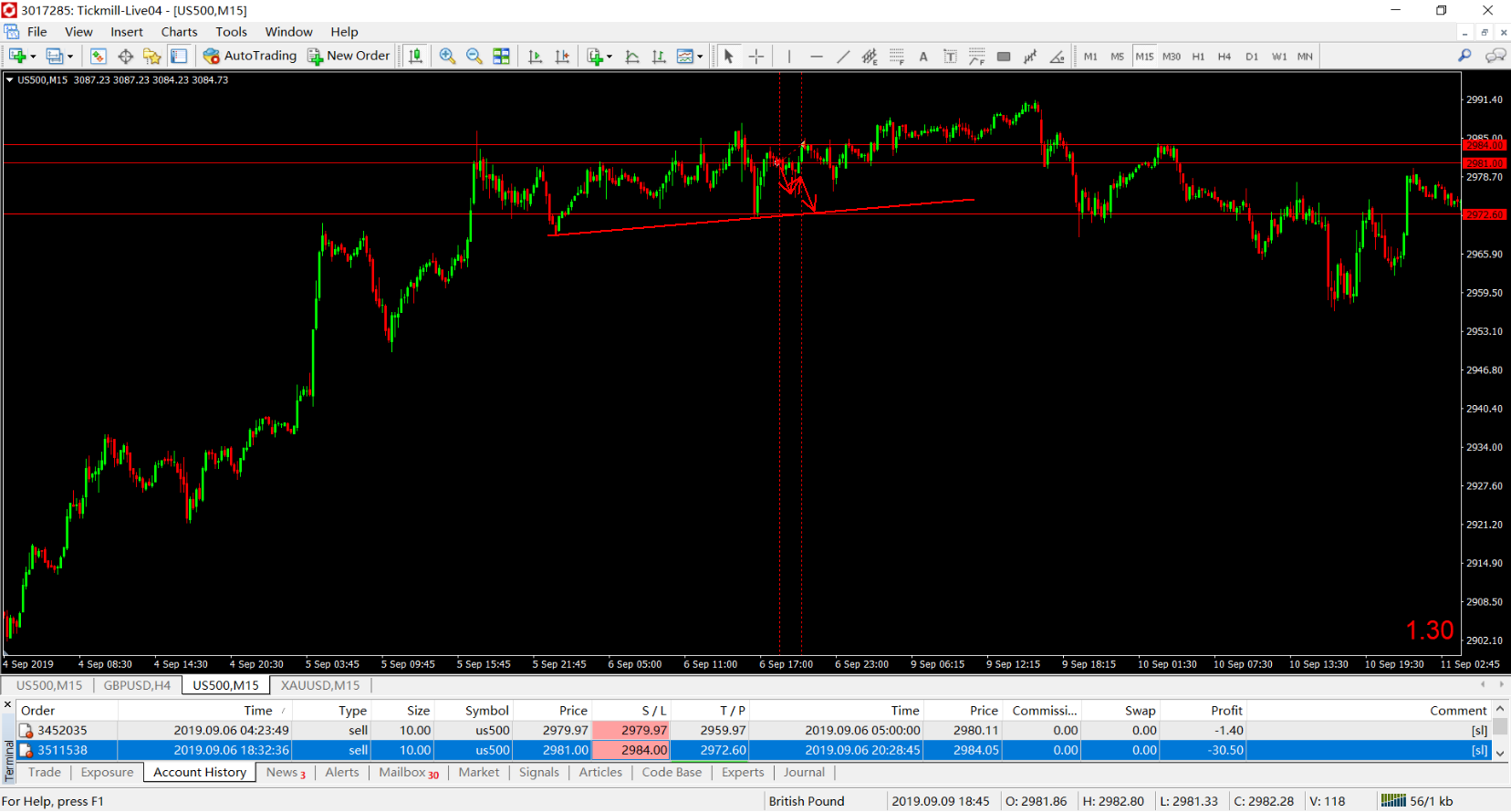 spx500: stop loss,-30.5pips