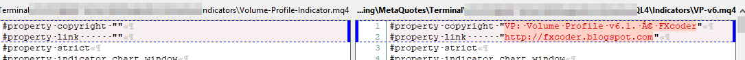 This "Volume-Profile-Indicator.mq4" indicator is a renamed VP-v6.mq4 indicator (in version 6.0) which also deleted the copyright information