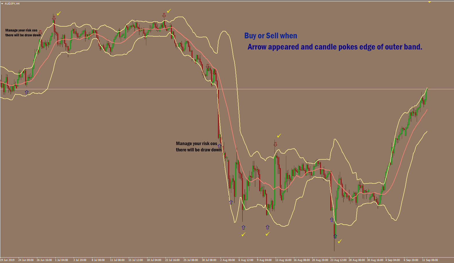 Or you can gamble by taking trade that is very close to the edge of the H4 band.