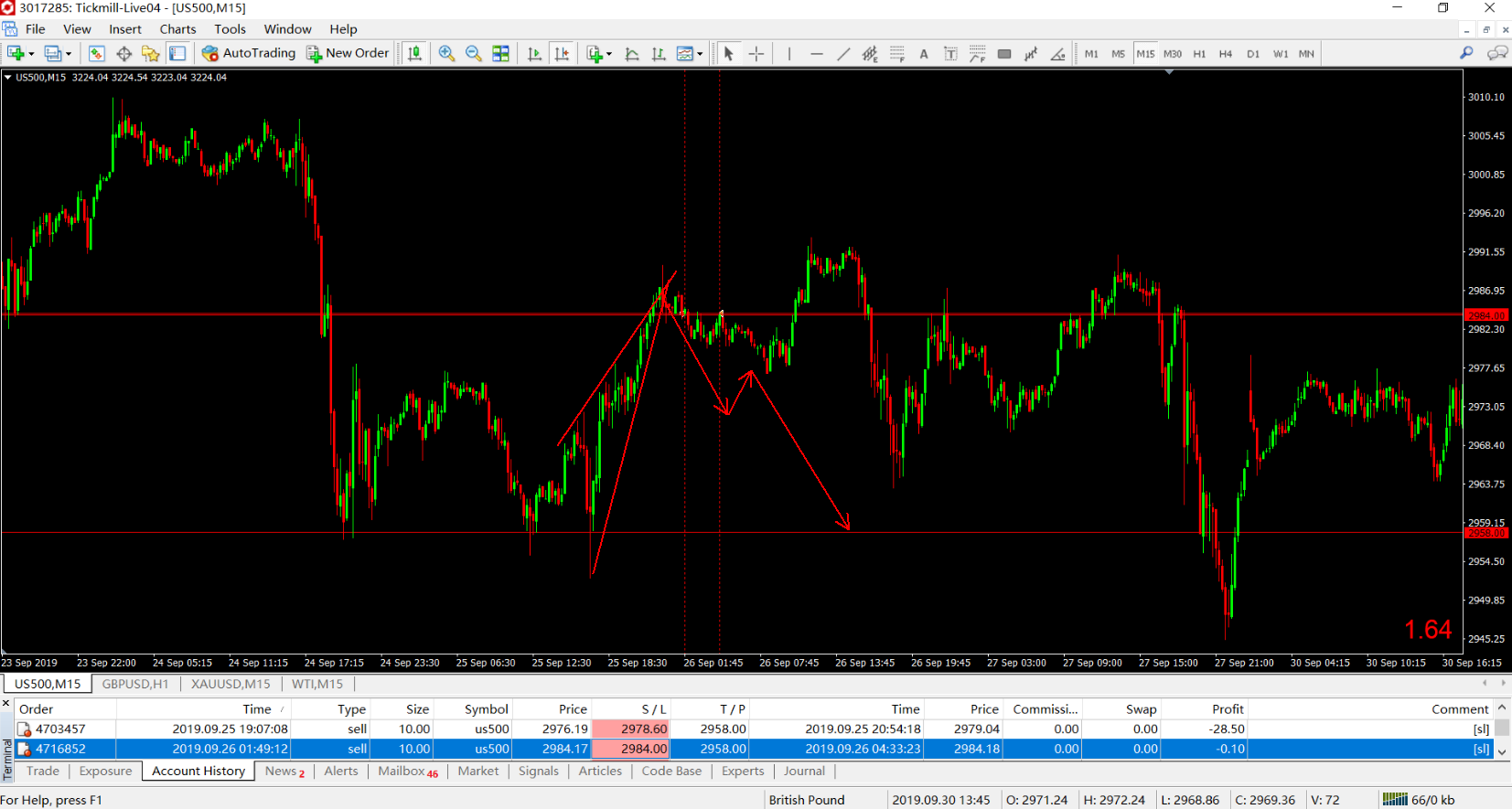 us500: break even, -0.1pip