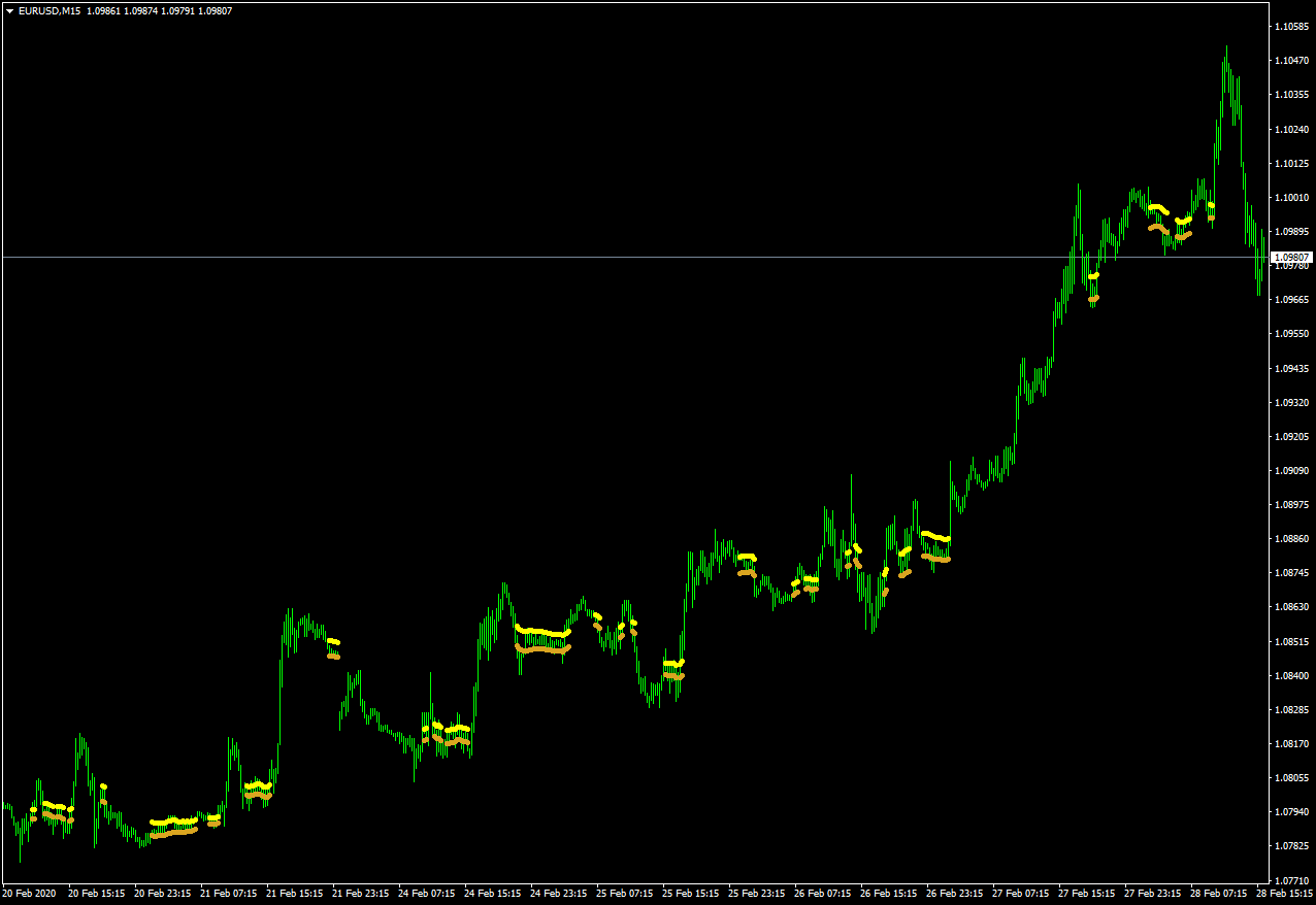 Could someone please identify the indicator in main chart (with the yellow/brown lines)?