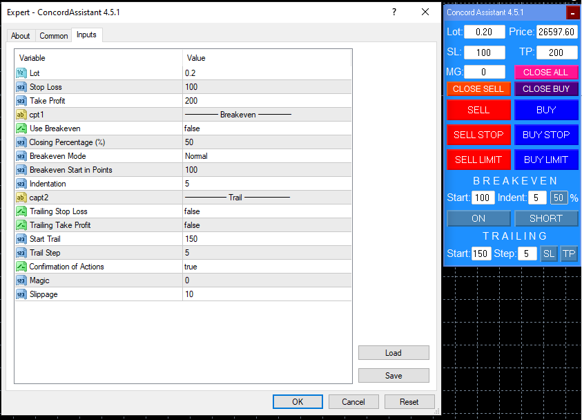 I've translated the input settings of ConcordAssistant trade manager EA from Russian to English. The internal part of the code has a lot of error messages which will be printed in Russian when an error occurs. This won't be helpful for Non-Russian speakers. I also converted those messages and code descriptions to English. Values are in points rather than pips, so adjust the values especially if you are trading indices and metals. Hope this helps.
