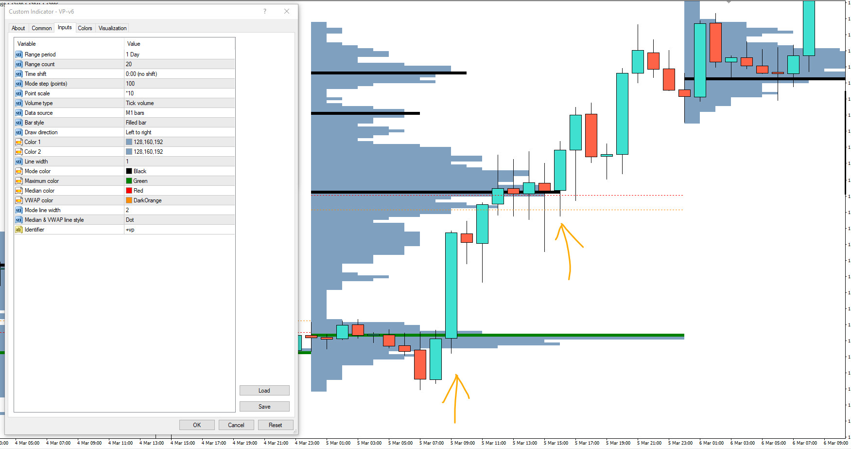 The Mode line is simply the max volume within the Mode Step amount set (100 points), if set to 20 there would be more black lines. The Max line is the level with the highest volume that day (or so far that day) and the median is just that, the median of frequency over the total period.Rannanato wrote: Sat Mar 07, 2020 12:35 am I have a question,