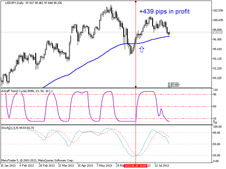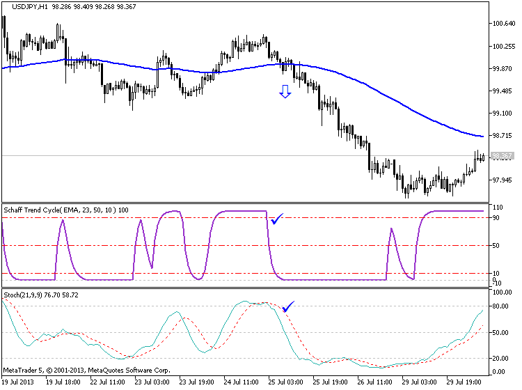Here are some examples of trading using the Schaff Trend Cycle and the Stochastic Indicator as conformation.