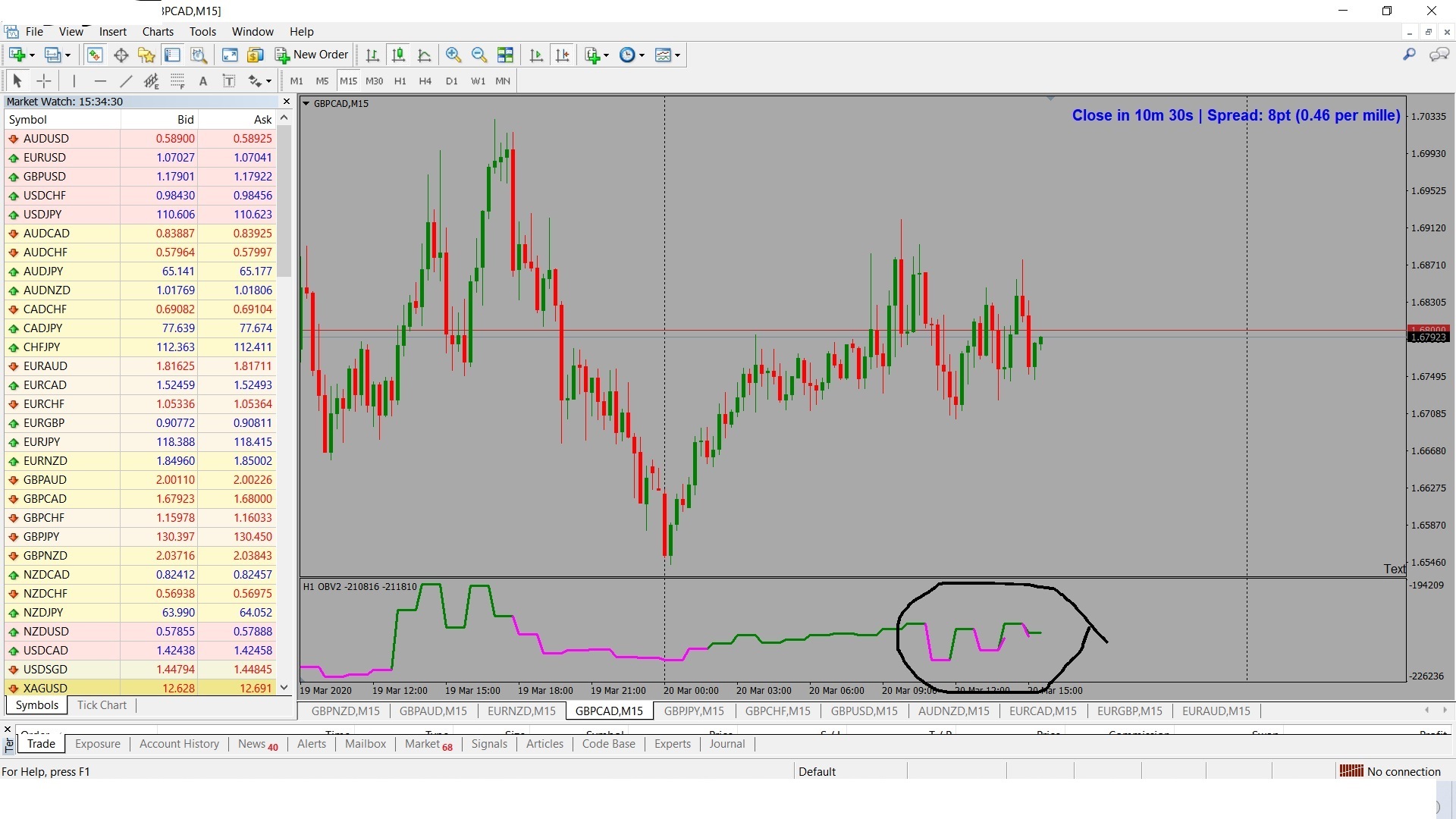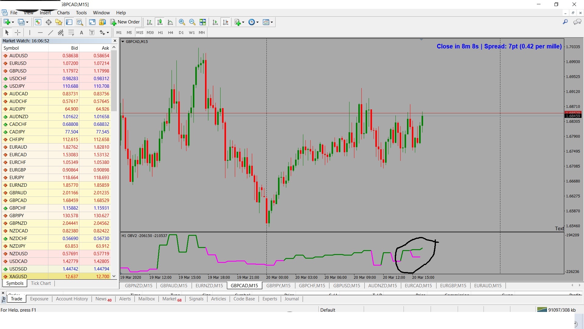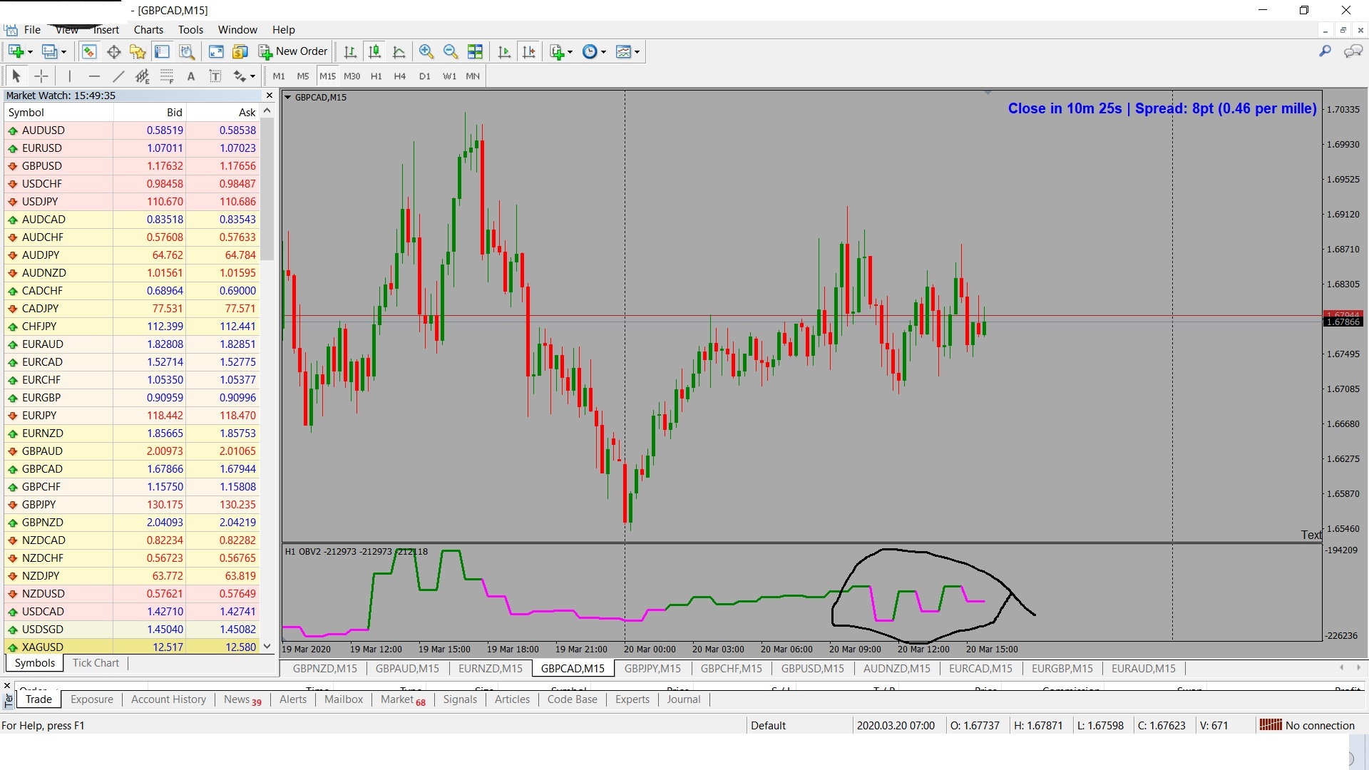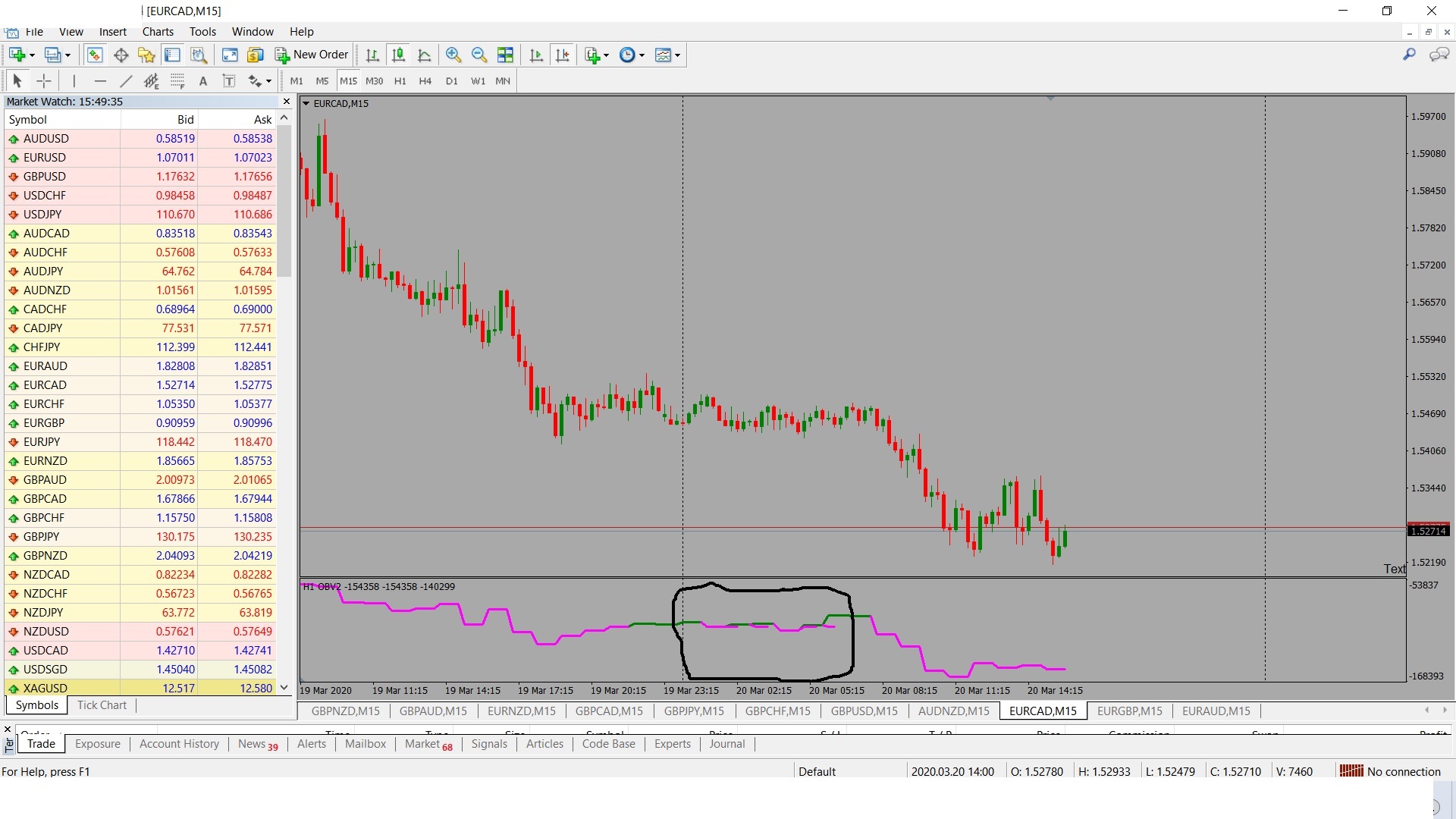 could you check this indicator OBV2.02_mtf+alerts nmc to see if it repaints or what causes that weird behavior as shown in the pictures